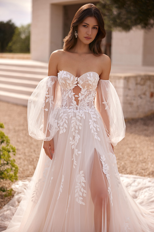 Odnímateľné balónové rukávy z tylu dodávajú šatám hravosť a ľahkosť. Vďaka nim si nevesta môže šaty prispôsobiť svojmu štýlu počas celého dňa – romantický obrad s rukávmi a večerná zábava bez nich. Elegantný rozparok na sukni zas prináša jemnú dávku sexepílu a podčiarkuje ladný pohyb nevesty pri každom kroku.